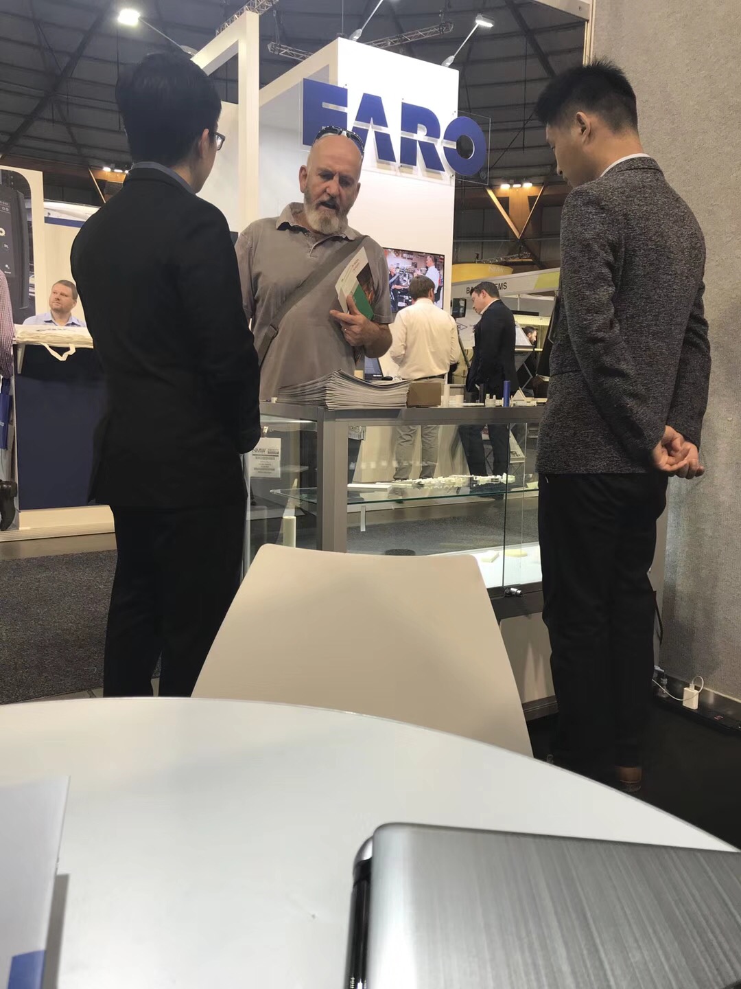 工作人員正在與外國(guó)客戶進(jìn)行洽談